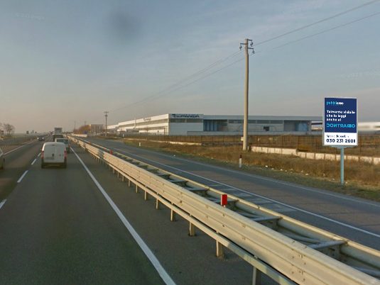 Cartello pubblicitario bifacciale formato cm 200x150, posizionato lungo SP BS 236 km 47+262 dx nel comune di Montichiari.
