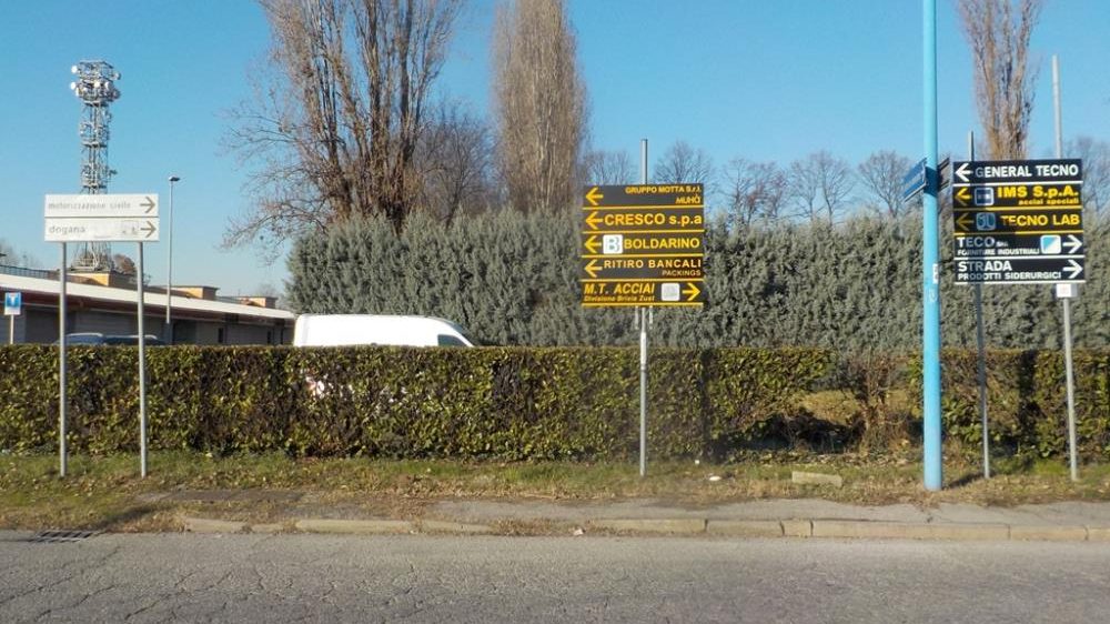 Impianto di frecce direzionali monofacciale formato cm 125x25 posizionato lungo Via Luigi Abbiati angolo via Serpente nel comune di Brescia.